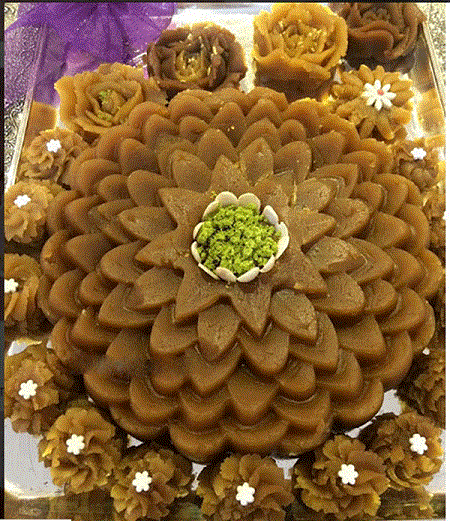 طرز تهیه حلوا مجلسی خوشمزه زعفرانی ، تزیین حلوا مجلسی