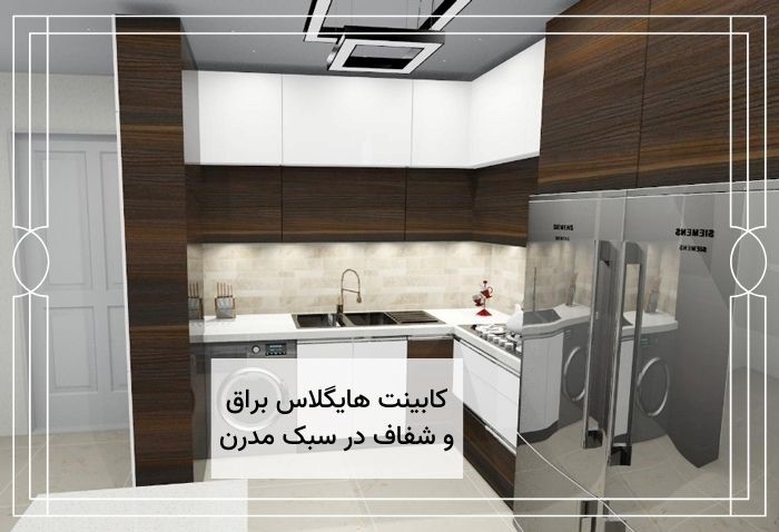 های گلاس از معروف ترین روکش های مدرن است. کابینت هایگلاس سطح شیشه ایی و براقی دارد که می تواند نور را بازتاب کند. این موضوع سبب می شود تا با بازتاب نور محیط بزرگتر دیده شود. روکش های کابینت هایگلاس توسط چسب هایی قوی به مغزی می چسبد. در این مدل کابینت از mdf برای مغزی بدنه استفاده می شود. ام دی اف تکه چوب های ریز و درشت است که توسط چسب های قوی و تحت گرما فشرده می شود.